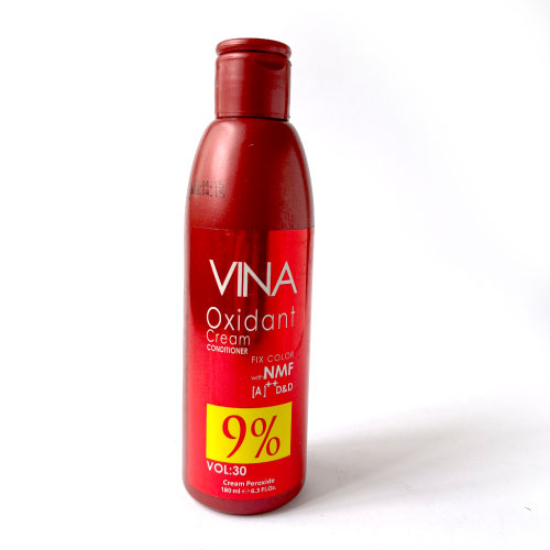 کرم اکسیدان نرمکننده وینا (Vina) با درصد ۹٪ و حجم ۳۰ میلیلیتر، از بهترین گزینهها در میان انواع اکسیدان مو برای
